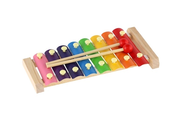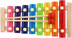 Este xilófono infantil compacto es una excelente opción para un primer contacto con la música. Gracias a sus láminas metálicas en colores vivos, los niños reconocen fácilmente los distintos tonos y pueden aprender melodías simples. El marco de madera robusto proporciona estabilidad y una larga vida útil.
