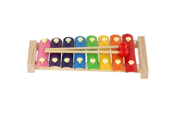 El xilófono se entrega con dos baquetas para que los niños puedan empezar a tocar nada más abrirlo y probar ritmos y melodías sencillas.