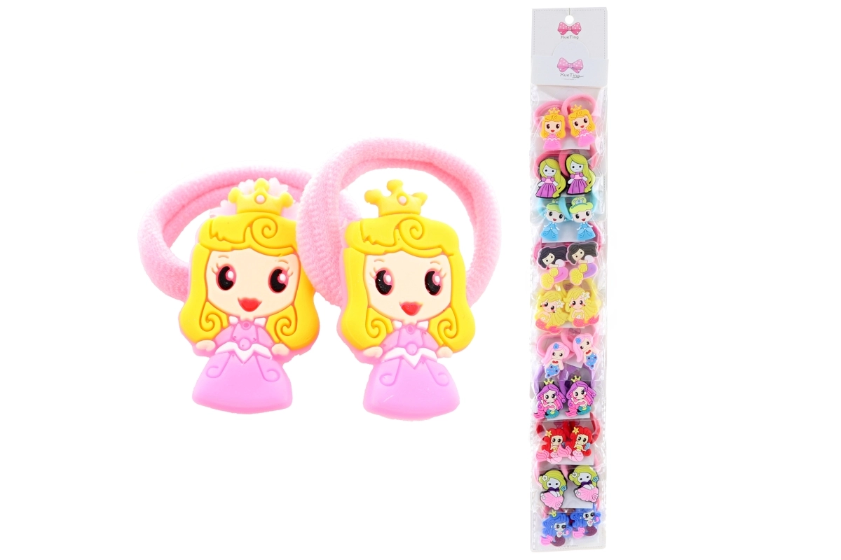 Adorables gomas para el pelo con motivo de princesas que encantarán a toda amante de los cuentos de hadas. En el paquete encontrarás 2 gomas de alta calidad en una bolsita práctica. Ideales para el uso diario, suaves con el cabello y un complemento con estilo para las pequeñas coquetas.