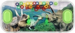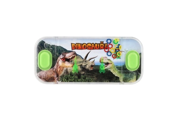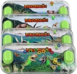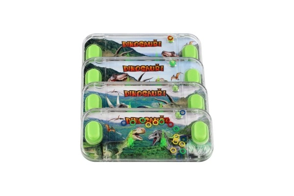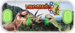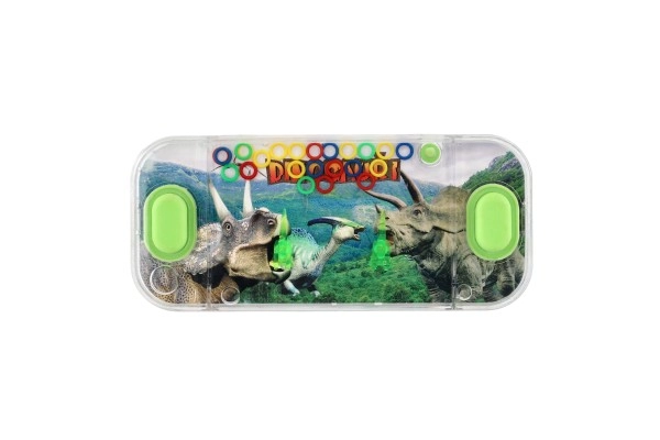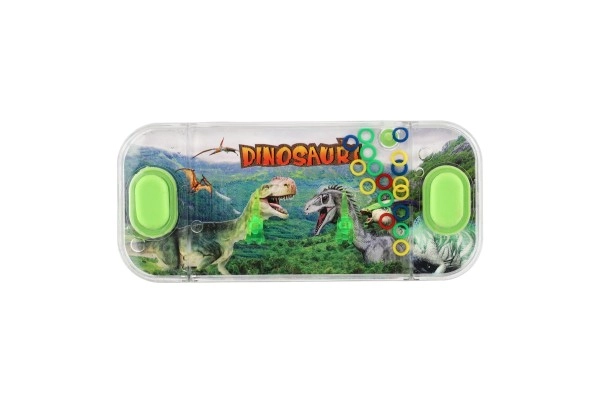 Este popular juego de agua de bolsillo con dinosaurios es un compañero perfecto para el coche, las vacaciones y los ratos libres en casa. Al presionar los dos botones laterales haces que los aros se muevan en el agua e intentas encajarlos en las clavijas. Su principio sencillo y el atractivo motivo garantizan diversión sin pantallas.