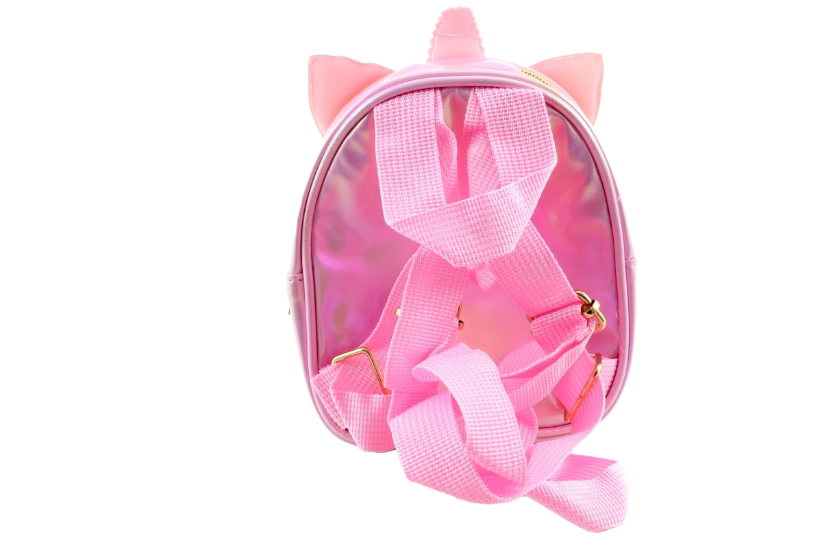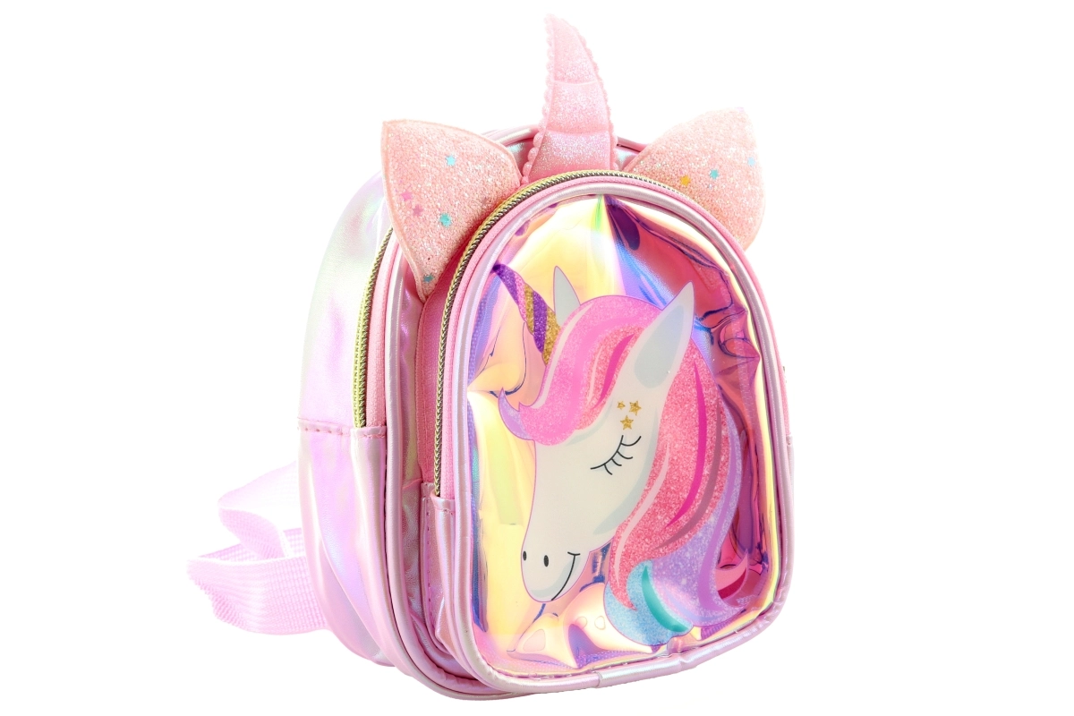 La superficie iridiscente y brillante, junto con encantadores detalles 3D (orejas y cuerno), convierten a esta mochila en un accesorio excepcional para el día a día.