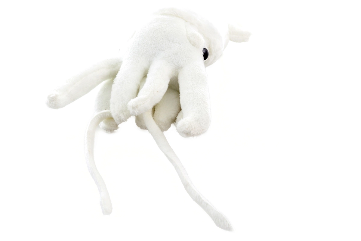 Este calamar de peluche blanco encantará a pequeños y grandes amantes de las criaturas marinas. Su forma realista con múltiples tentáculos y ojo llamativo estimula la imaginación y favorece el juego creativo e imaginativo. Gracias a su material agradable y suave, es perfecto como compañero para la cuna y como una bonita decoración para la habitación infantil.