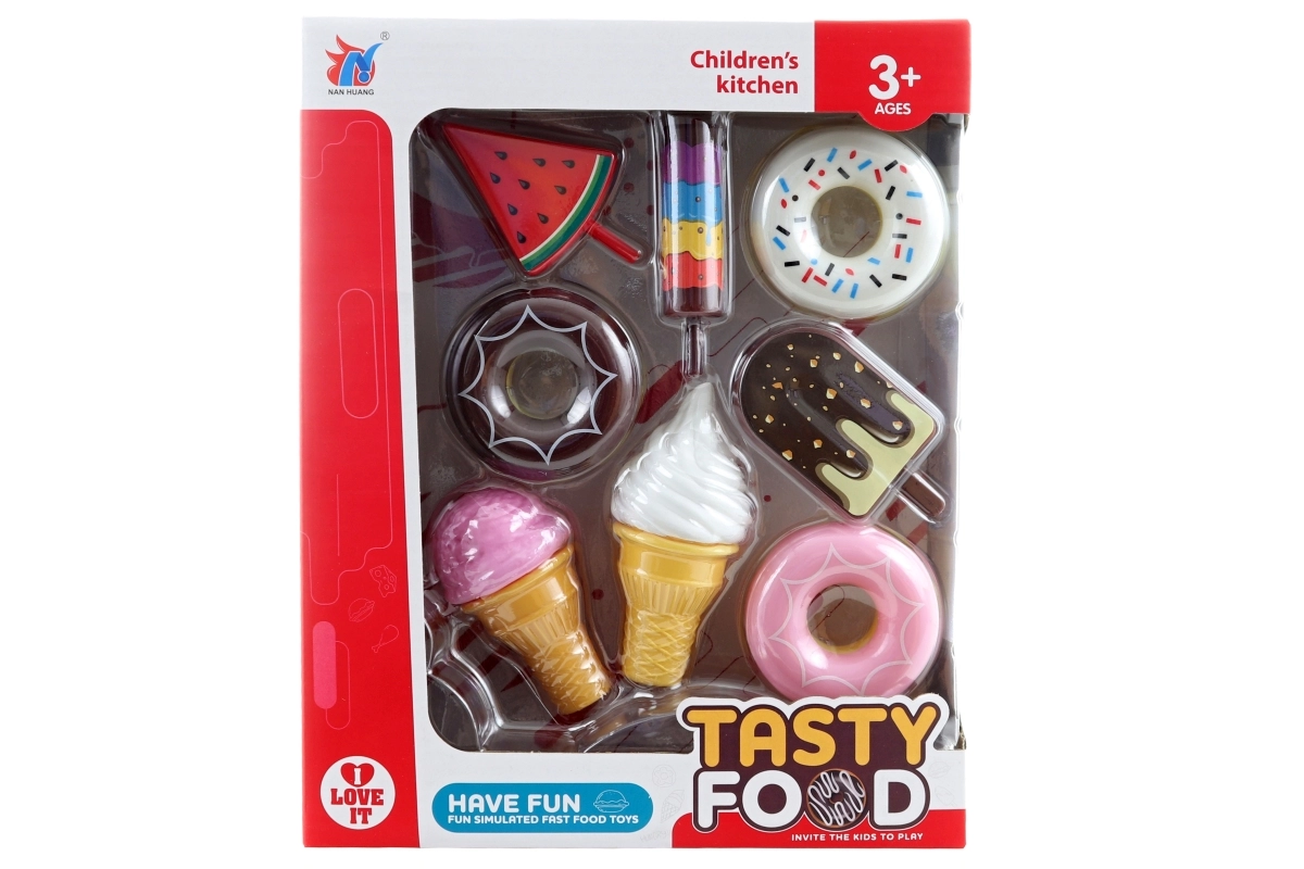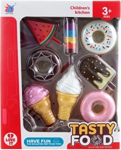 Un divertido juego de comidas dulces para pequeños cocineros encantará a cualquier niño a partir de 3 años. Incluye diversas delicias de plástico para juegos creativos de cocina y tienda. Plástico seguro, diseño ligero y resistente y empaque compacto garantizan un fácil almacenamiento y transporte.