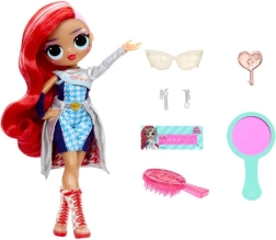 - Muñeca OMG, outfit, par de zapatos, par de pendientes, 1–5 accesorios, cepillo para el pelo, soporte