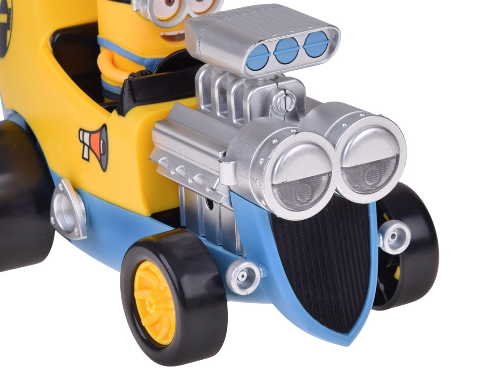 Arranca la diversión con el hot-rod banana conducido por un MINION. El cochecito combina un diseño colorido y original con efectos que encantan a los niños: al pulsar los botones se oyen alegres frases de minions, fanfarrias y claxon, se encienden las luces y el motor vibra para una experiencia aún más realista.