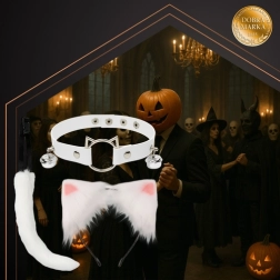 - 3 en 1: cola, diadema con orejas y choker con cascabeles