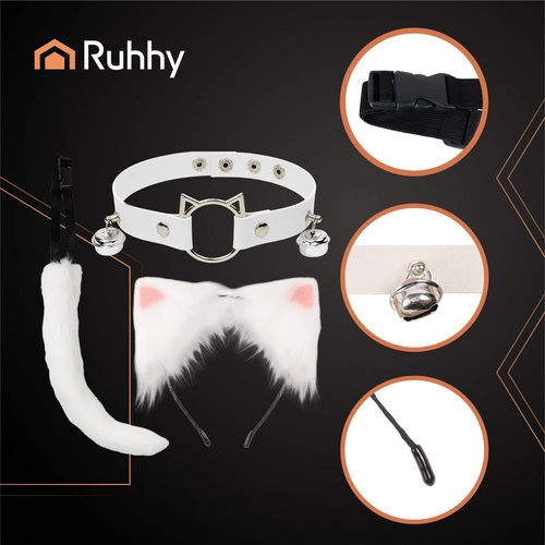 El elegante set RUHHY de 3 piezas en color blanco transforma cualquier outfit al instante. Incluye una cola suave con alambre moldeable, una diadema con orejas y un choker ajustable con cascabeles. Ideal para cosplay, sesiones de fotos, fiestas y TikTok: es ligero, cómodo y listo para usar de inmediato. Completo 3 en 1, acabado agradable de piel sintética, choker y cola ajustables y talla universal para diferentes tipos de cuerpo.