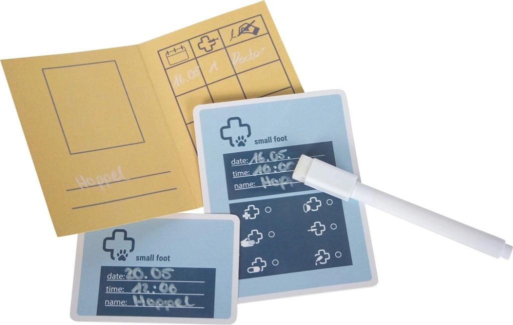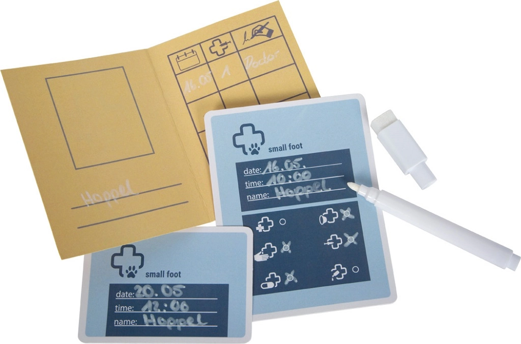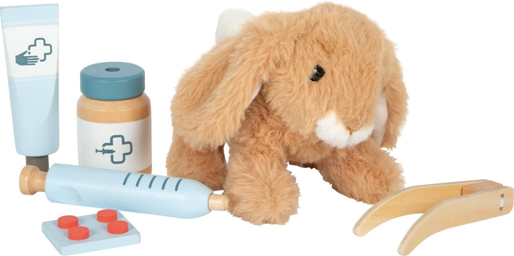 El práctico bolso funciona como caja de transporte para el conejito y como organizador de todas las herramientas. Gracias a sus bolsillos ordenados y a la cremallera, todo está en su sitio, listo para la revisión. El set está hecho con materiales de calidad (peluche, madera, textil, papel, plástico) y está diseñado para un fácil agarre por manos infantiles.