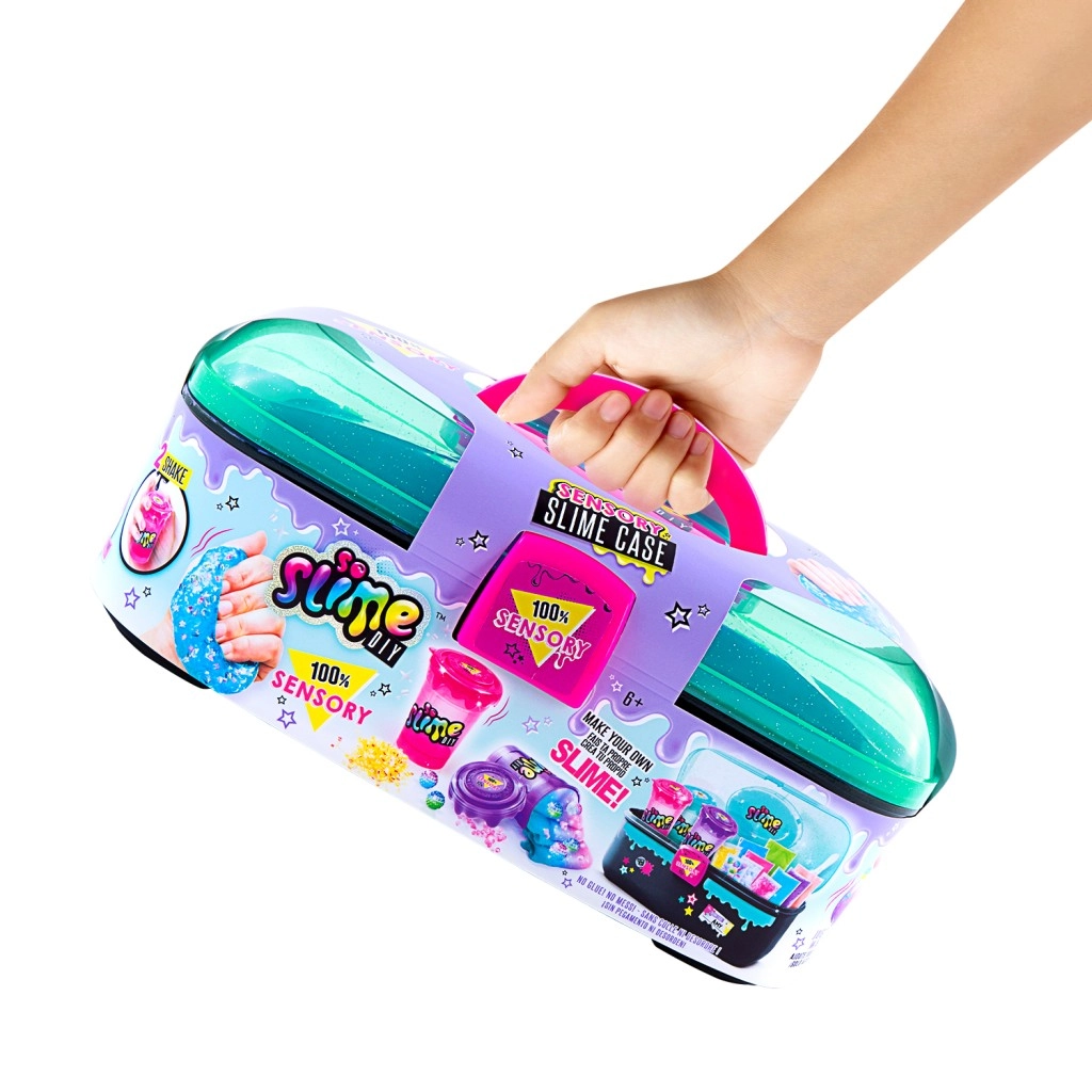 El compacto maletín SO SLIME incluye todo lo que los niños necesitan para fabricar al instante slimes coloridos y brillantes. En unos pocos pasos, crearán combinaciones originales de colores y texturas y podrán decorarlas con los adornos incluidos.