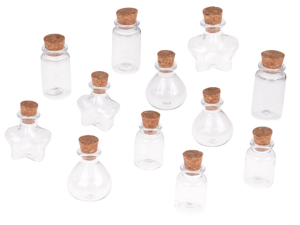 - 12× mini botellita de diferentes formas con corcho