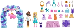 - 2 mini muñecas (Polly y Shani), figura de perrito, arco de globos con piñata, regalos, mesa de fiesta y varios accesorios