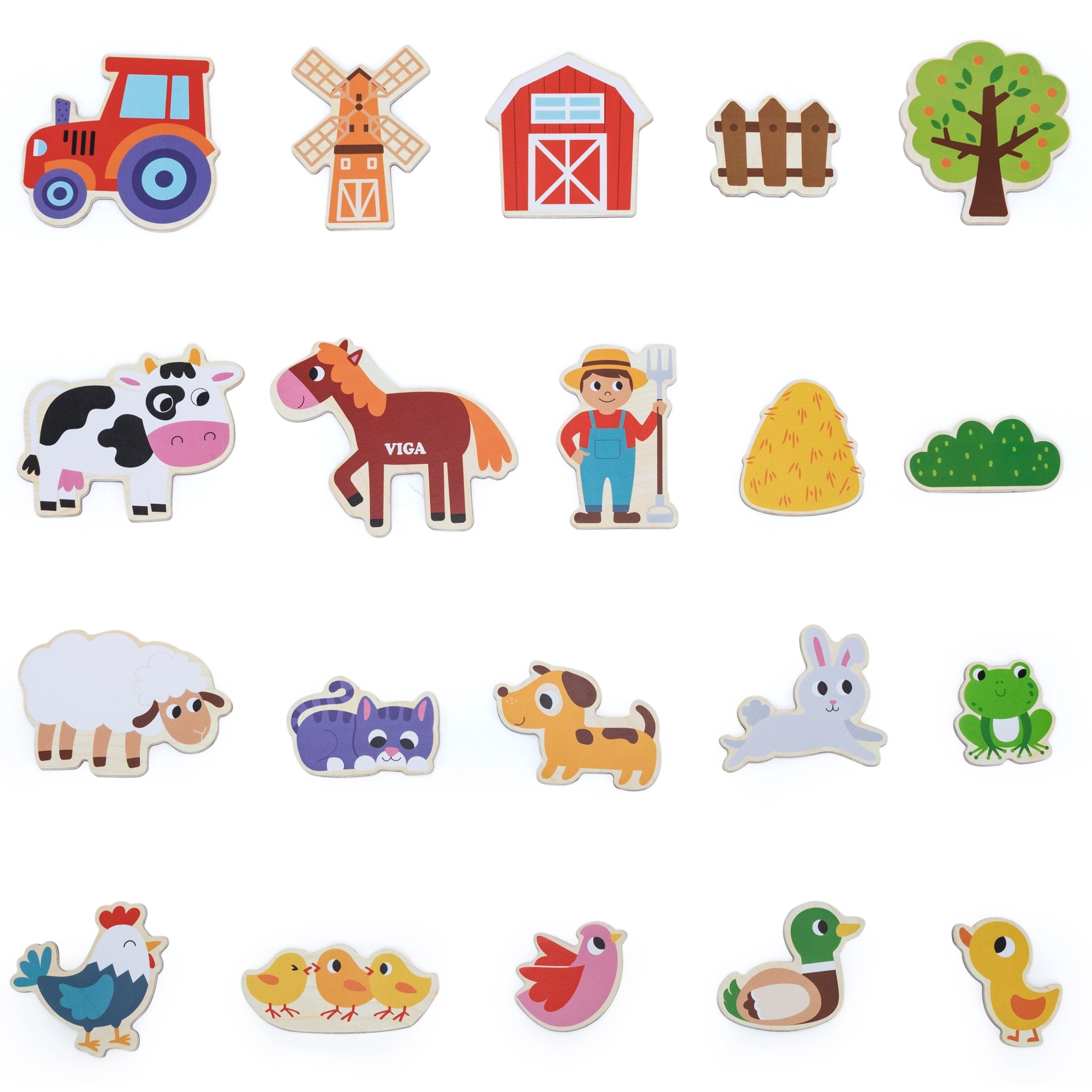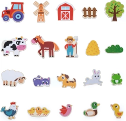 Descubre el encanto del campo con los imanes de madera VIGA. Este set de 20 imanes de colores con animales de granja es ideal para la nevera, pizarra magnética y superficies especiales. Los niños pueden crear escenas, contar historias y aprender de forma natural a reconocer animales de granja – todo mediante un juego seguro y divertido.