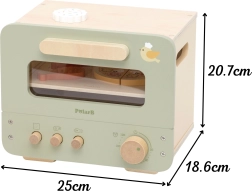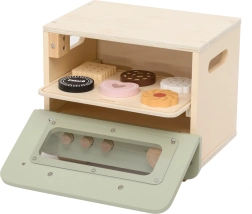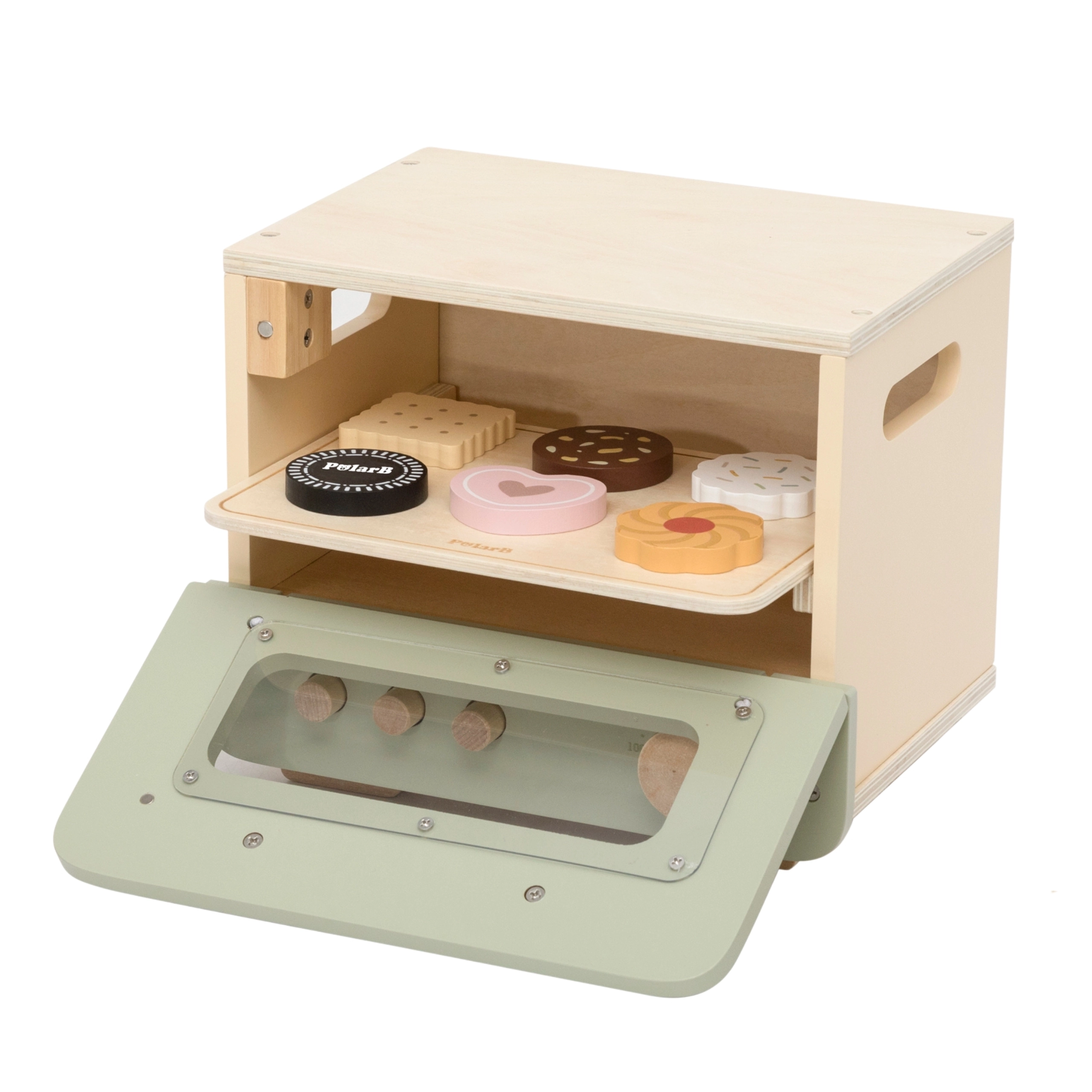 Este elegante horno infantil en verde y beige ofrece a los niños una experiencia auténtica de horneado. La ventanita transparente, los mandos funcionales y la bandeja extraíble invitan a servir de forma creativa delicias dulces y saladas. Los niños pueden cortar y montar la mini pizza, hornear galletas y entrenar la destreza y la comunicación jugando a roles.
