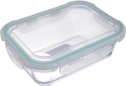 Contenedor de vidrio universal para almacenar y transportar comidas. La tapa hermética con cuatro clips y junta de silicona garantiza una sellado fiable, protege el contenido de la humedad y el aire y ayuda a mantener la frescura y el aroma. Gracias al vidrio de borosilicato, el recipiente es resistente al calor y adecuado incluso para hornear en el horno (sin tapa), así como para servir directamente en la mesa.