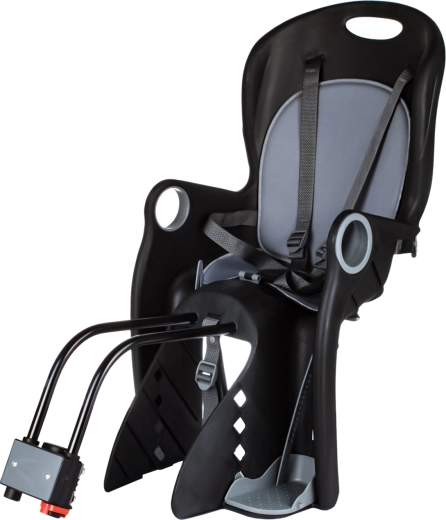 - Seguridad: arnés de 2 puntos con regulación de 2 niveles y fijación estable al cuadro bajo el sillín.