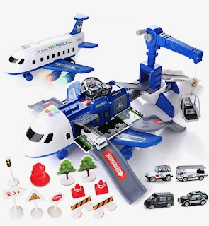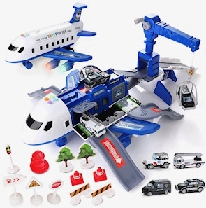 Descubre el mundo de acción policial con este set multifuncional. Al abrirlo, el gran avión se convierte en un aparcamiento con grúa funcional, donde los niños pueden cargar, descargar y organizar operaciones. Los efectos de luz y sonido aportan realismo y diversión al juego.
