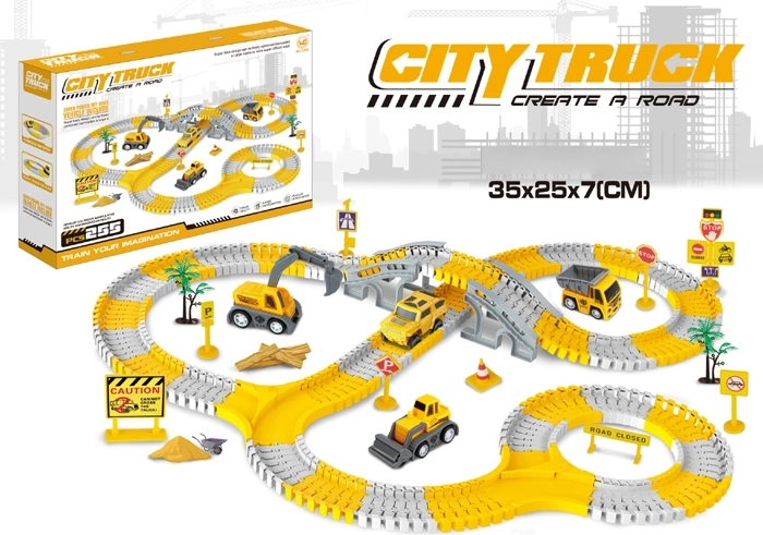 Construye tu propio circuito de carreras con temática de trabajo y disfruta de horas de creatividad y diversión. Este set DIY incluye hasta 255 piezas, entre ellas segmentos de pista flexibles y vehículos de construcción. Gracias al montaje sencillo, los niños desarrollan la motricidad fina, el pensamiento lógico y la creatividad. El coche circula por la pista con una pila AA y el conjunto final ofrece un gran circuito de 105 × 70 cm.