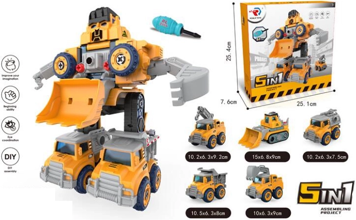 Divertido kit de construcción para niños a partir de 3 años: este robot 5 en 1 se transforma fácilmente en diferentes máquinas de trabajo y de vuelta. Fomenta la motricidad fina, la creatividad y el pensamiento lógico. Incluye un destornillador infantil para un montaje y desmontaje sencillos.