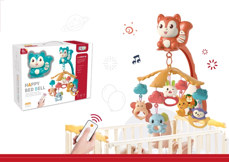 El móvil para cuna con una adorable ardilla combina estimulación visual y efectos calmantes. Gracias al proyector, proyecta suaves patrones de luz que favorecen la relajación y el sueño. Cinco colgantes (sonajeros/mordedores) ofrecen diferentes texturas y sonidos para el desarrollo de la motricidad fina y la percepción sensorial.