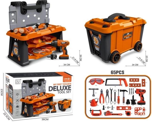 El juego de taller portátil para pequeños manitas en un práctico maletín con ruedas encantará a cualquier pequeño constructor. Incluye hasta 65 piezas, incluida una taladradora infantil a pilas, gafas protectoras y accesorios. Sus dimensiones compactas y el almacenamiento inteligente garantizan un fácil transporte y un rápido montaje de la mesa de trabajo en cualquier lugar. Ideal como juguete para desarrollar la creatividad y la motricidad fina para niños a partir de 3 años.