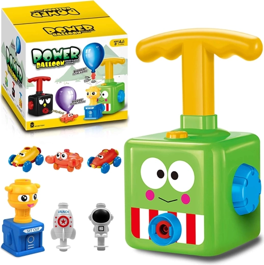 Descubre un juego sencillo y adictivo donde el globo impulsa la diversión. Los niños, con la ayuda del inflador, hinchan fácilmente el globo, lo colocan en el cochecito o en la figurita y luego lo lanzan desde el gran lanzador con forma de rana. Observa cómo los cochecitos se lanzan a toda velocidad, las figuritas saltan y el cangrejo se pone en marcha: cada intento es distinto y los niños entrenan su coordinación y su paciencia.