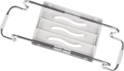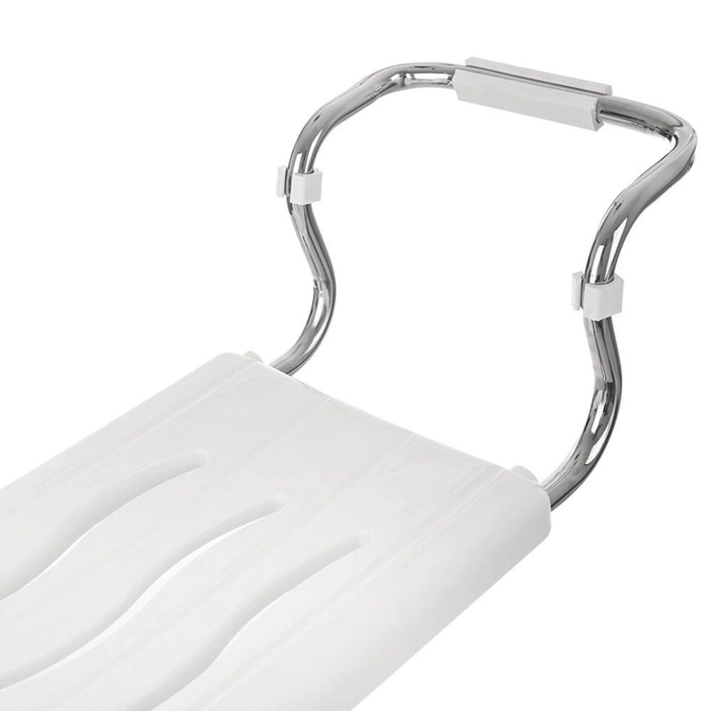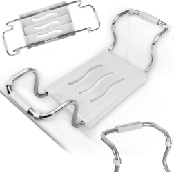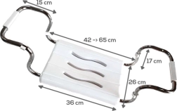Asiento para bañera práctico y seguro para un baño cómodo en casa. Gracias a su ancho ajustable de 42,5–65 cm se adapta a la mayoría de las bañeras, la capacidad de carga de 120 kg aporta seguridad y las inserciones antideslizantes protegen el borde de la bañera. Construcción estable cromada y orificios de drenaje para un secado e higiene sencillos.