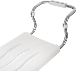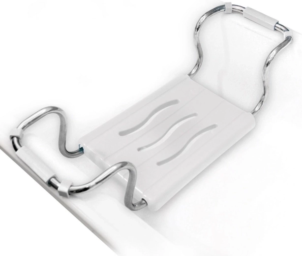 El asiento profesional para bañera es una ayuda ideal para personas mayores, personas con movilidad reducida y en recuperación. El marco metálico robusto de acero cromado y la superficie de asiento de plástico resistente (aprox. 36 × 26 cm) garantizan estabilidad y larga durabilidad. El asiento se coloca fácilmente sobre los bordes de la bañera y gracias a los brazos regulables de 42,5–65 cm se adapta a diferentes anchos.