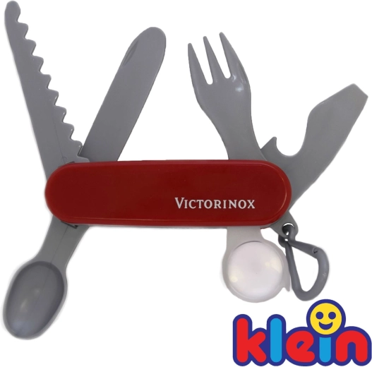 La navaja de bolsillo infantil VICTORINOX de KLEIN es una réplica fiel pero completamente segura de la legendaria navaja suiza. Gracias a su fabricación precisa, empuñadura roja con logotipo y práctico mosquetón, los pequeños aventureros pueden engancharla al cinturón y tenerla siempre a mano.
