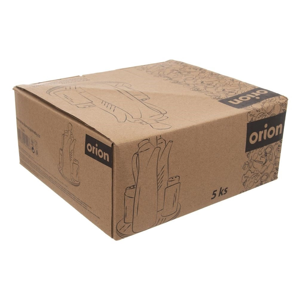 El set incluye dos botellas de 300 ml para aceite y vinagre, un salero y un pimentero, todo colocado en un soporte giratorio compacto con asa práctica para un transporte cómodo. El diseño minimalista combina a la perfección con mesas modernas y clásicas y permite un servicio elegante de especias.