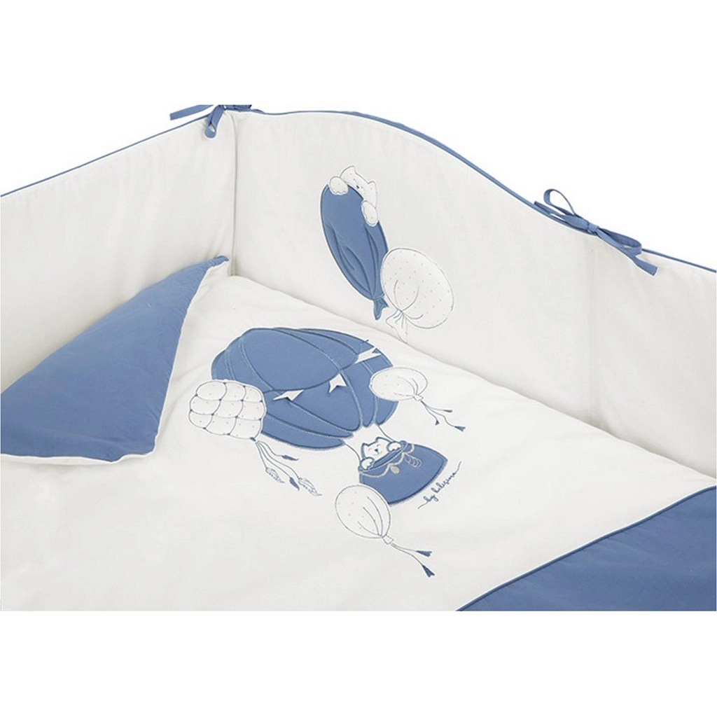 El elegante set para cuna BELISIMA Ballons en combinación azul y blanco destaca por sus motivos lúdicos de globos y sus colores suaves y relajantes. El 100% algodón naturalmente transpirable es agradable al tacto y delicado con la piel sensible del bebé.