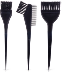 Dos brochas anchas para una cobertura rápida y una brocha combinada con peine para alisar y distribuir el color de forma uniforme.