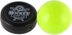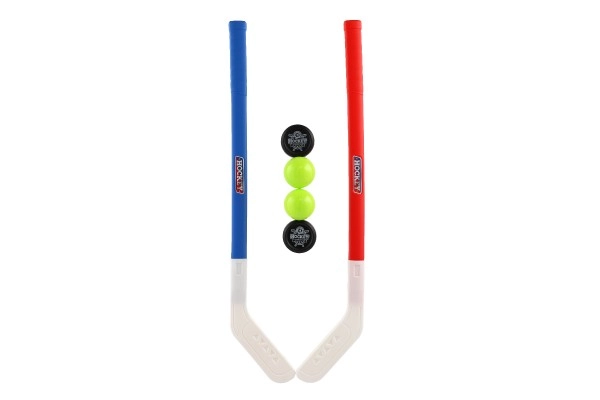 El paquete incluye un palo de hockey de plástico, un disco y una pelota para una experiencia de hockey completa.