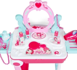 Descubre el mundo mágico del maquillaje y la fantasía con el tocador infantil en maletín 2 en 1 BABY MIX. Al abrirlo, el maletín de viaje se convierte en un tocador estable con un espejo en forma de corazón que, al presionarlo, se ilumina y emite un sonido suave. Es ideal para el juego de roles, favorece la motricidad fina y desarrolla la creatividad de los niños.