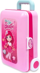 El amplio conjunto de accesorios incluye secador, peine, collar, pulseras, anillos, “perfume” y complementos de maquillaje, todo de plástico inocuo y sin cosméticos reales. Los ruedas y el asa telescópica facilitan los viajes para que la pequeña estilista lleve su salón a todas partes.