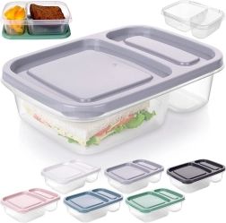 La fiambrera dividida de 750 ml es una gran opción para el uso diario. Dos compartimentos independientes —uno mayor y otro menor— mantienen el sándwich, la fruta, la verdura o los snacks bien separados, evitando que se mezclen sabores y texturas. Las paredes transparentes facilitan ver el contenido y la tapa de color se cierra a presión para que todo se mantenga fresco.