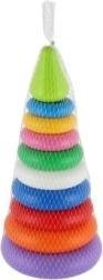 Cada anillo tiene un color diferente, lo que ayuda al reconocimiento de colores y a la diferenciación por tamaños. Los niños se verán fascinados por los colores vivos y disfrutarán apilando y desmontando la pirámide una y otra vez.