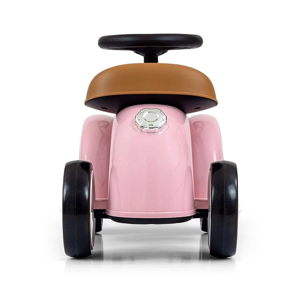 Este adorable correpasillos de estilo retro combina un aspecto icónico con detalles ingeniosos: elementos cromados, emblema ROYCE y un cómodo asiento moldeado en tono marrón. Gracias al chasis de plástico ligero se transporta fácilmente y los niños lo manejan sin esfuerzo impulsándose con los pies.