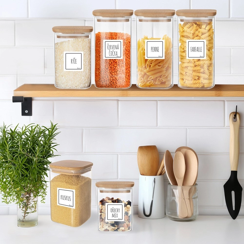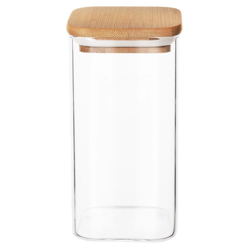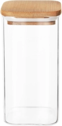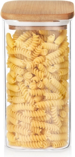 Este tarro de vidrio de alta calidad combina diseño limpio y funcionalidad. El vidrio de borosilicato es resistente a los cambios de temperatura; la tapa de bambú con anillo de silicona garantiza un sellado fiable y mayor frescura de los alimentos almacenados. El vidrio transparente permite controlar fácilmente el contenido y la cantidad.