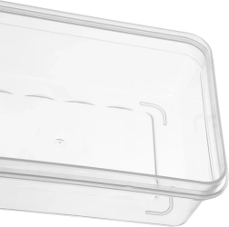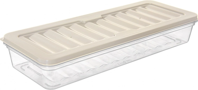 Organiza el frigorífico de forma clara y mantiene jamón, quesos o fruta frescos por más tiempo. Su diseño bajo y alargado encaja perfectamente en estantes y cajones, y las paredes transparentes permiten comprobar el contenido sin abrir. El plástico rígido es ligero y a la vez resistente para el uso diario.