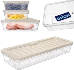 El perfil bajo y la forma alargada son perfectos para organizar jamón, quesos y otros alimentos. Las cajas se pueden apilar fácilmente.