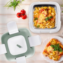 La válvula integrada permite una ventilación segura y una apertura sencilla después de transportar comidas calientes.