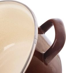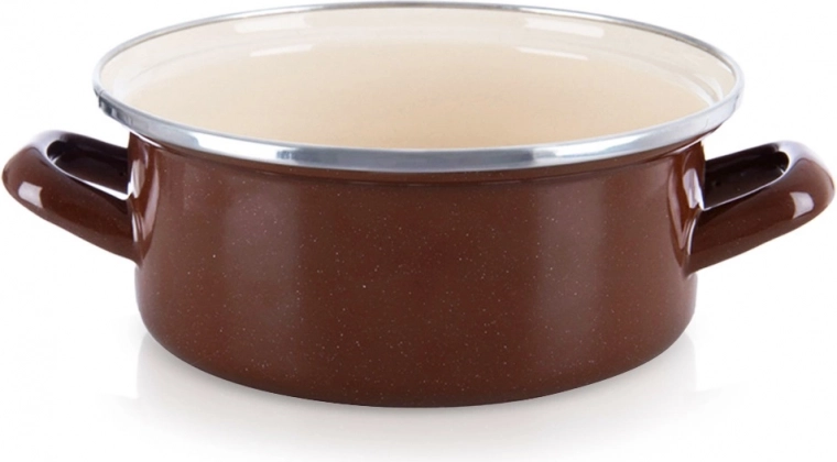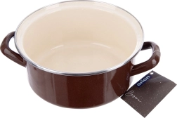 Elegante olla de estilo retro de la colección Brown que combina la resistencia del esmalte con un diseño atemporal. Exterior y asas en color marrón; interior con esmalte color crema; el borde superior es de acero inoxidable para mayor durabilidad. Gracias a la distribución uniforme del calor, es excelente para sopas, salsas y guisos.