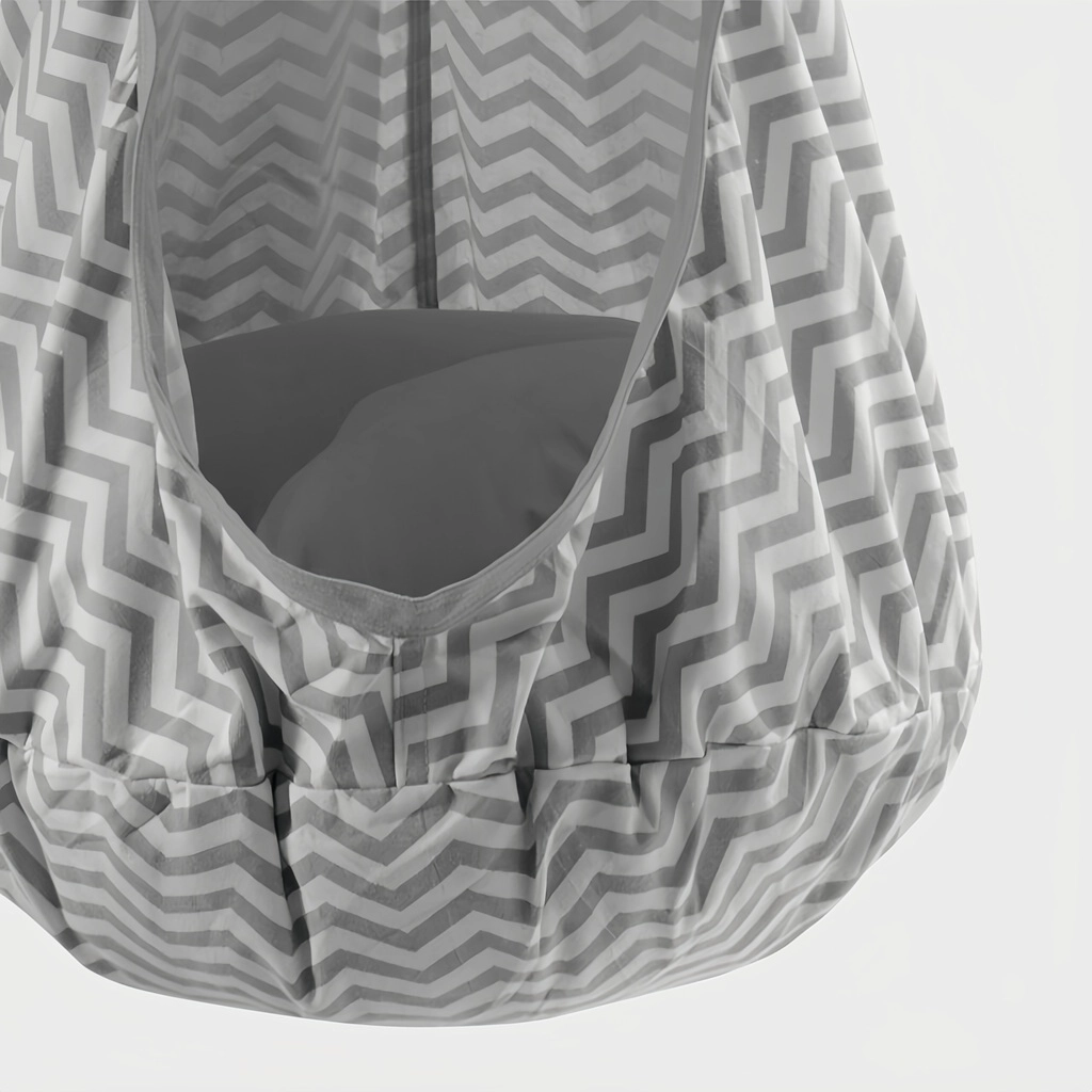 El saco colgante 2Kids Toys es un lugar ideal donde los niños pueden relajarse, leer o balancearse suavemente. El algodón natural 100% es agradable al tacto, transpirable y, a la vez, lo suficientemente resistente para un balanceo seguro. Gracias a su color gris universal, encaja fácilmente tanto en el cuarto infantil como en la sala de estar.