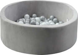Una piscina de bolas elegante y segura en color gris ofrece a los niños desde 6 meses un lugar suave y protegido para jugar y descansar. Gracias a sus paredes blandas, relleno de espuma y 120 bolas, favorece el desarrollo de la motricidad fina y gruesa, la coordinación y la percepción sensorial. Ideal para el dormitorio infantil y la zona de juegos.