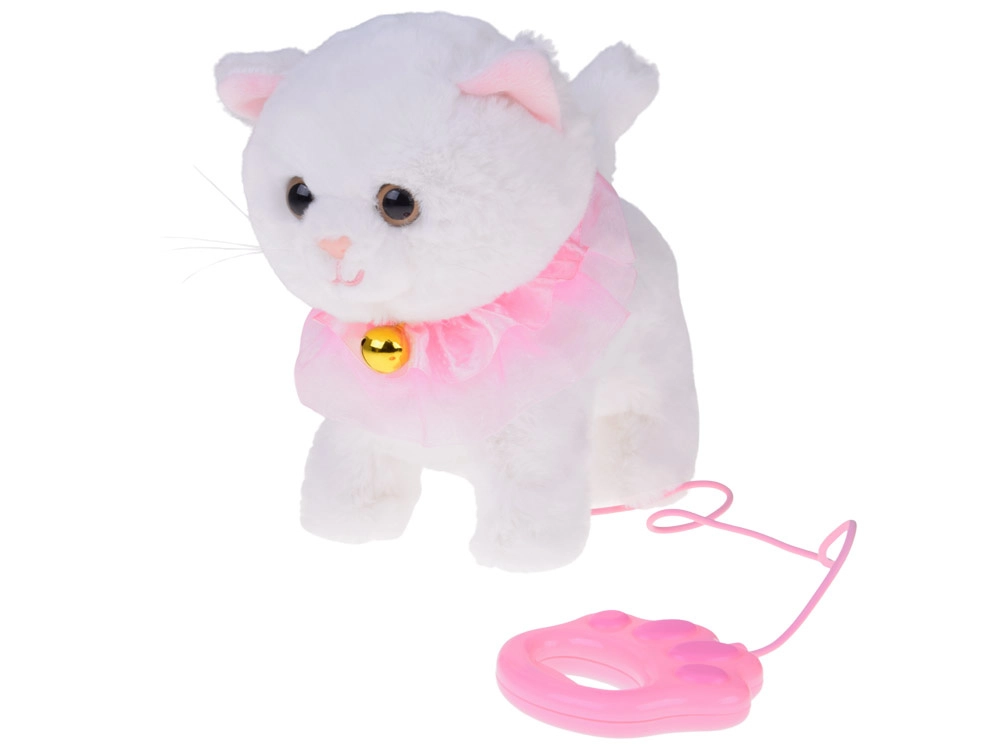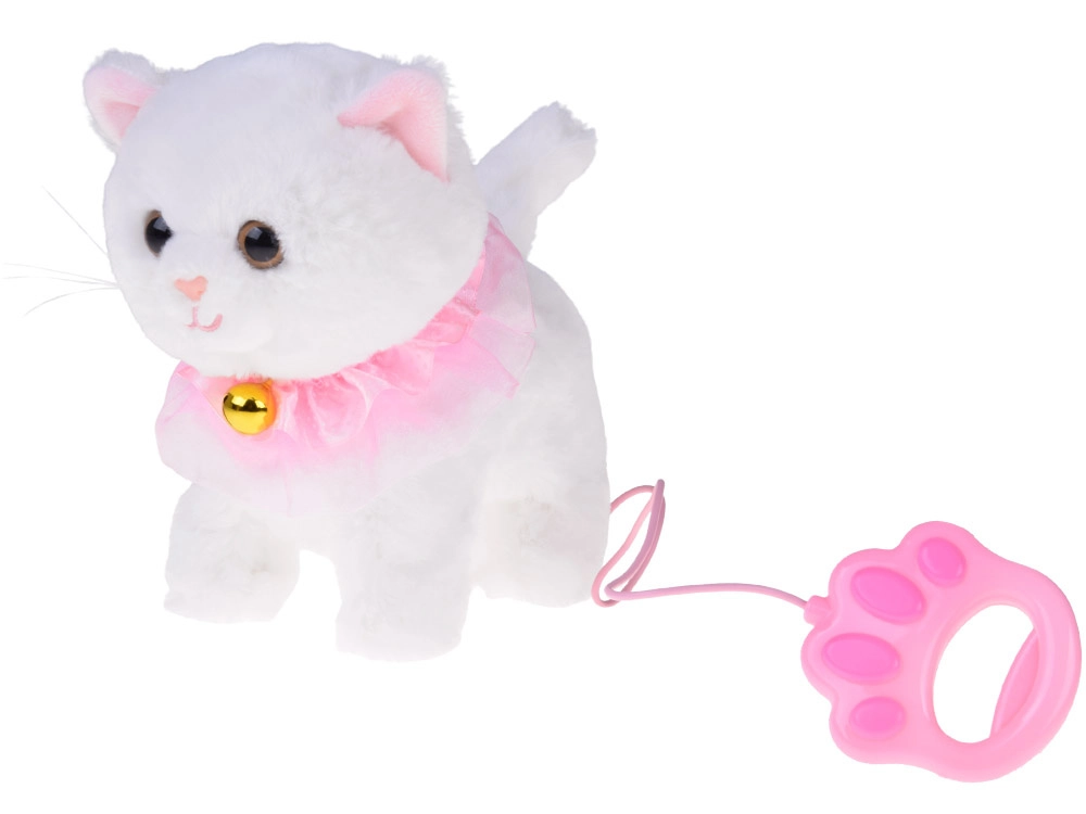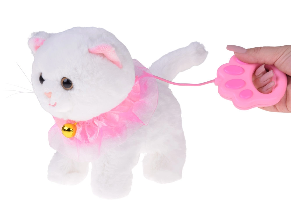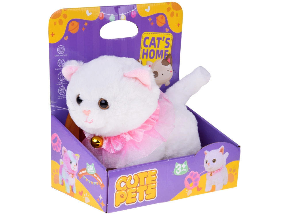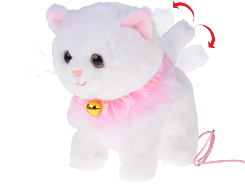 El gatito de peluche interactivo con correa es un gran compañero para los niños que desean tener su propia mascota. Solo hay que encenderlo, tomar la correa y el gatito echará a andar alegremente, maullará y moverá la cola. Su suave acabado de peluche con ojos brillantes, tierna naricita y pequeños bigotes hará que los niños se enamoren de él al instante.