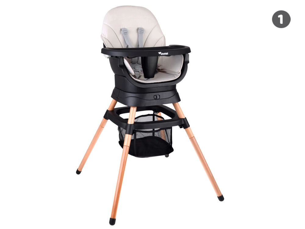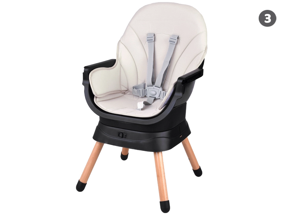 Esta trona moderna y ergonómica combina estabilidad, seguridad y un diseño modular. Con un sencillo sistema de clic, la adaptas a las necesidades del niño: desde las primeras papillas hasta el asiento independiente para sentarse y jugar. Su estética minimalista se integra en cualquier interior.