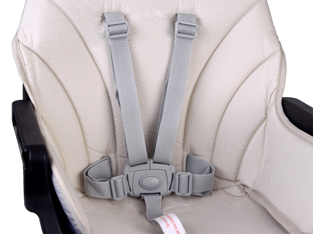 - Arnés de cinco puntos, separador entre las piernas y topes antideslizantes