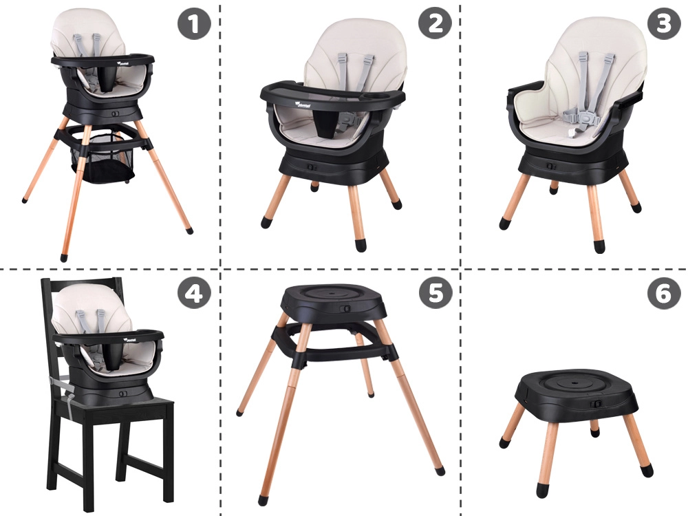 - Trona alta con bandeja ajustable y extraíble