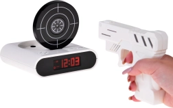 Haz más ameno el despertar con un despertador original que silenciarás apuntando a la diana y apretando el gatillo. Este divertido despertador ofrece disparo a la diana con pistola de infrarrojos, posibilidad de grabar tu propio sonido de alarma y 2 modos de juego. Gracias a su pantalla LCD legible y alimentación por pilas o micro USB, es ideal para el dormitorio, la oficina y como regalo original.
