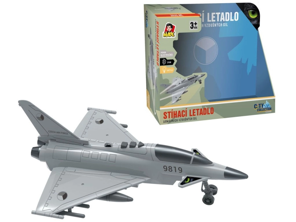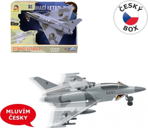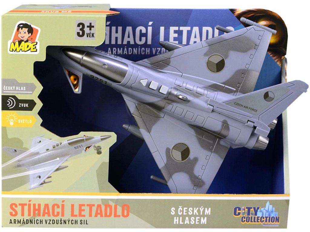 Disfruta misiones aéreas llenas de acción con este avión de combate detallado, decorado con las insignias de la República Checa. El modelo ofrece diálogos auténticos en checo entre la torre de control y el piloto, efectos de luz y el sonido de un caza en vuelo, que potencian la atmósfera de juego.